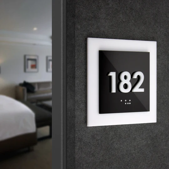 Apartman Kapı Numaraları tabelası üç katmandan oluşur: akrilik taban, akrilik platformlar ve akrilik latterler.